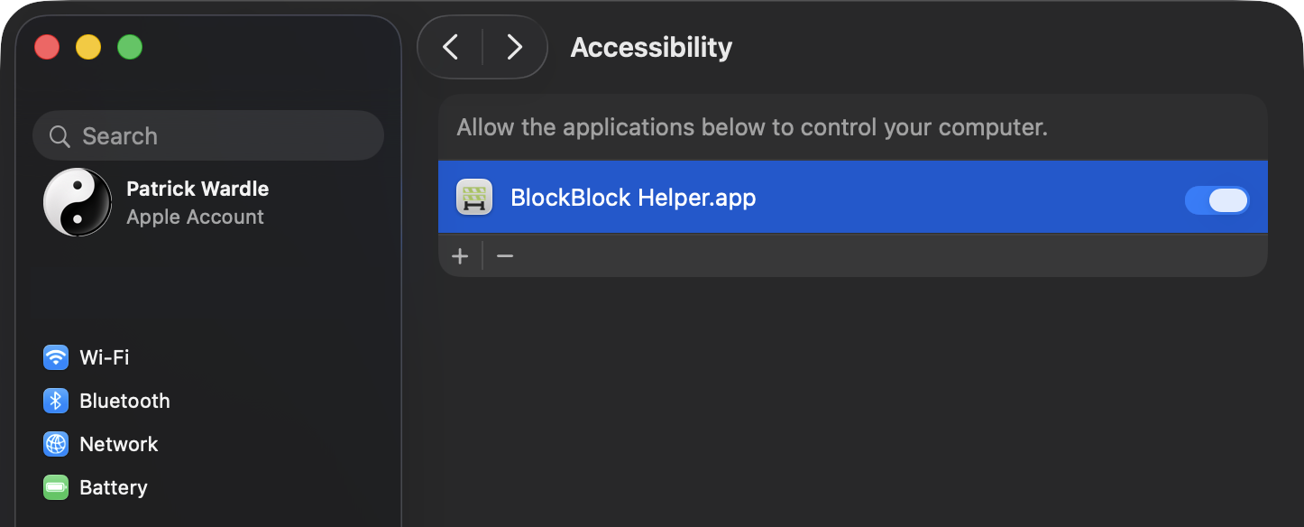 When enabling this mode, you will have to grant BlockBlock's Helper app Accessibility permissions: